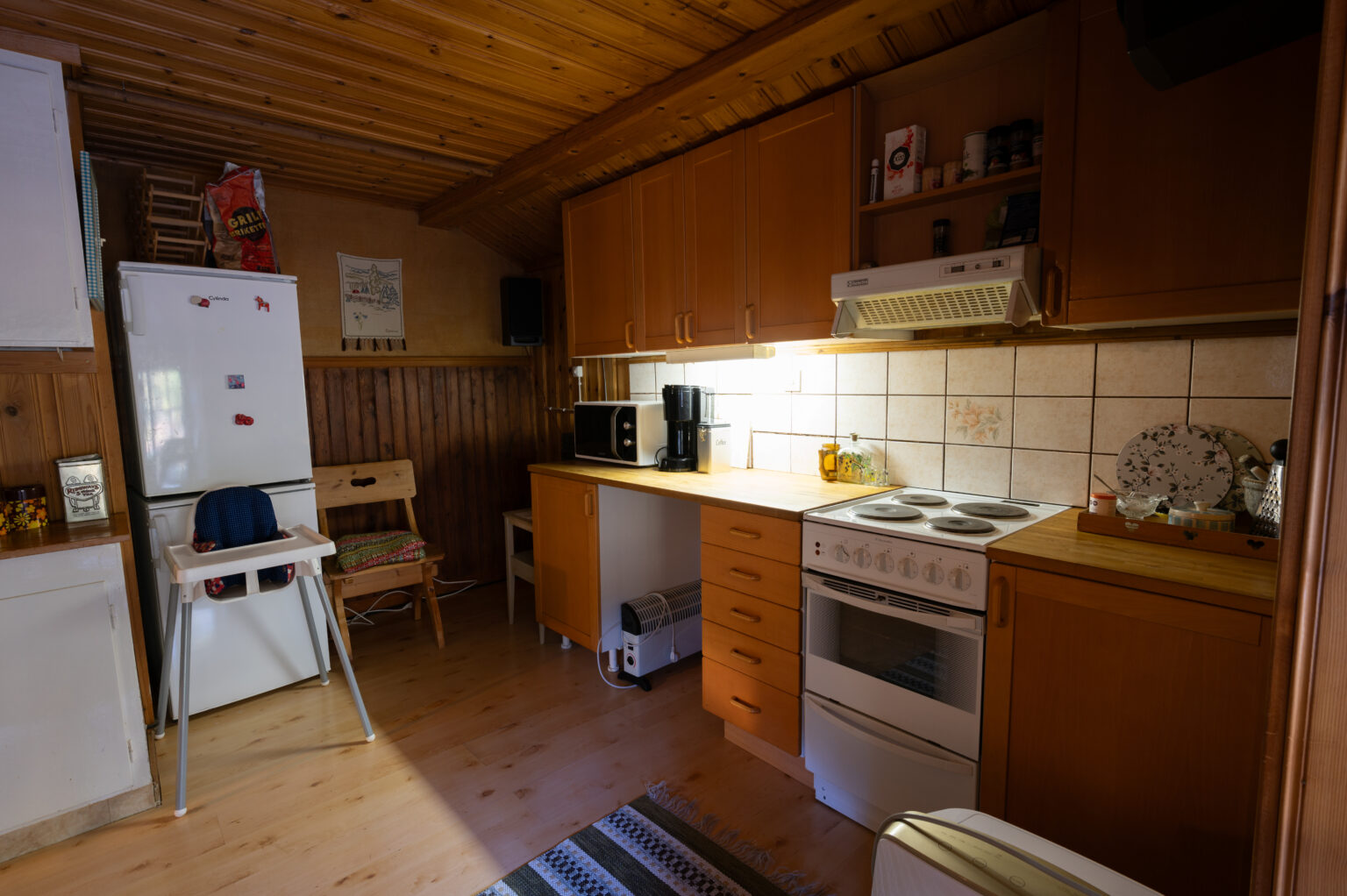 Fin liten stuga med ett större rum med två tarrsängar, bord, soffa och öppen spis. En mindre köksdel för matlagning, ganska fullt utrustad. Toalett och dusch rakt fram innanför ytterdörren. Bra känsla att kliva in i stugan. Jag åkte skidor och sov över i stugan. Lugnt och skönt.